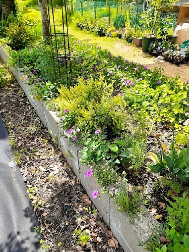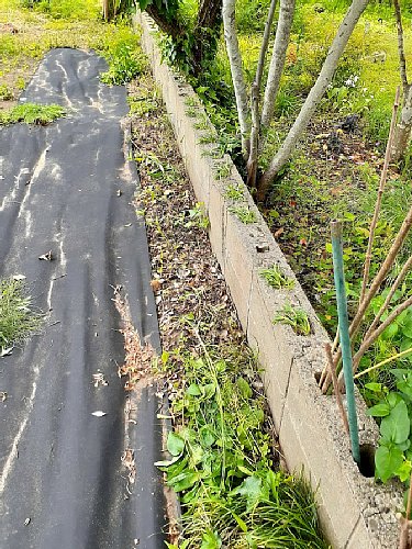 庭と畑の境のブロックへの植付けから(*^^)v