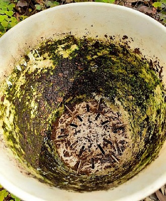 植えてみたら鉢の内側がコケ?