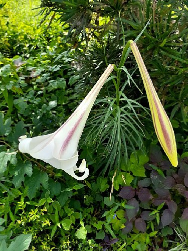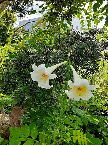 赤い縞が入ってない真っ白なのがシンテッポウユリ(新鉄砲百合)