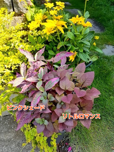 酷暑で花が少なくなる時期は、こうしたらカラーリーフが重宝します(*^^)v