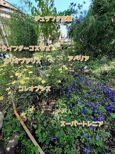 耐寒性はあまりなく、去年、この場所に植えたランタナはダメになっちゃたので、今冬はサンルームで冬越しさせようかなぁ・・・
