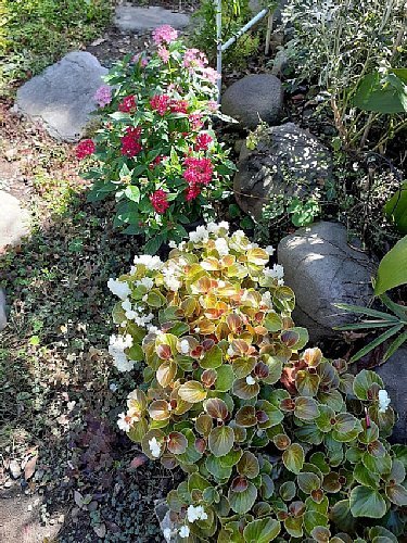 ▼コチラは門扉前の北西コーナーのベゴニアとペンタス