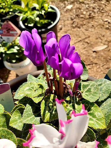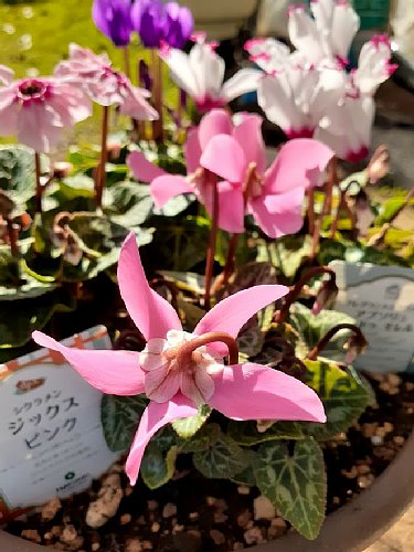 シクラメンにしては珍しく、花が上を向いて次々と咲くタイプ