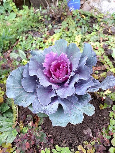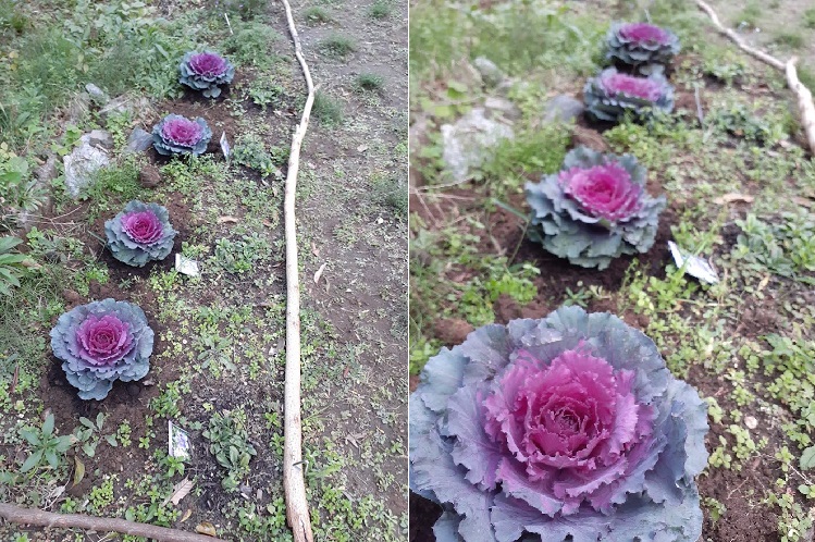 ▼それから葉ボタンをこんな感じで住居側・南西エリアに地植えしました🎵
