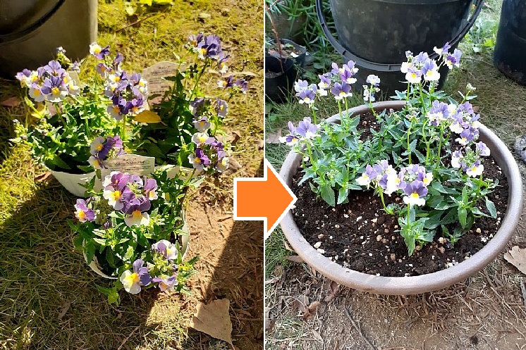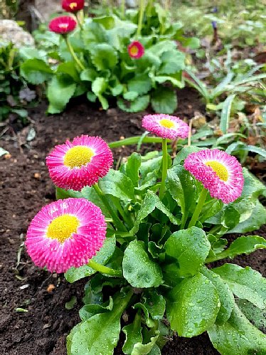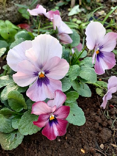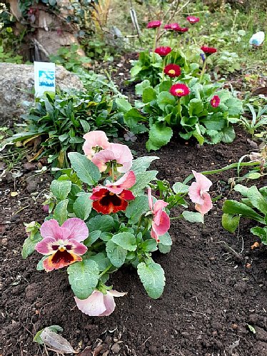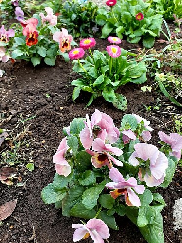 この子たちのお隣りの花壇には、先日植えたプリムラとビオラたちが順調に生育中👇