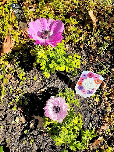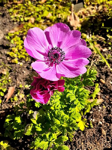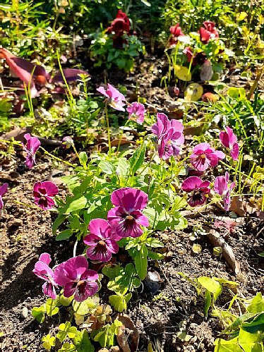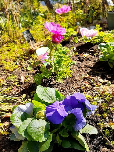 ▼ガレージ側・南東メイン花壇には、紫のパンジーとピンクのアネモネを😊