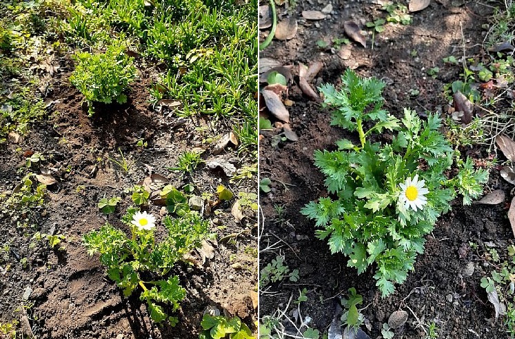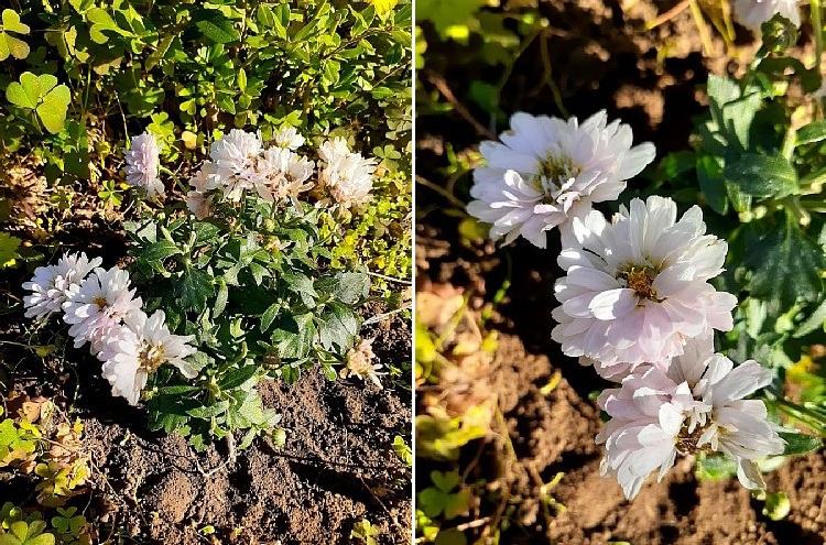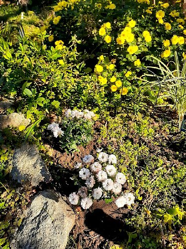 ▼同じクリサンセマム アラモードなんだけど、さらにお安く100円になってたこの子たちは住居側・南東花壇のご近所さんに頂いたマムの手前に植えました。