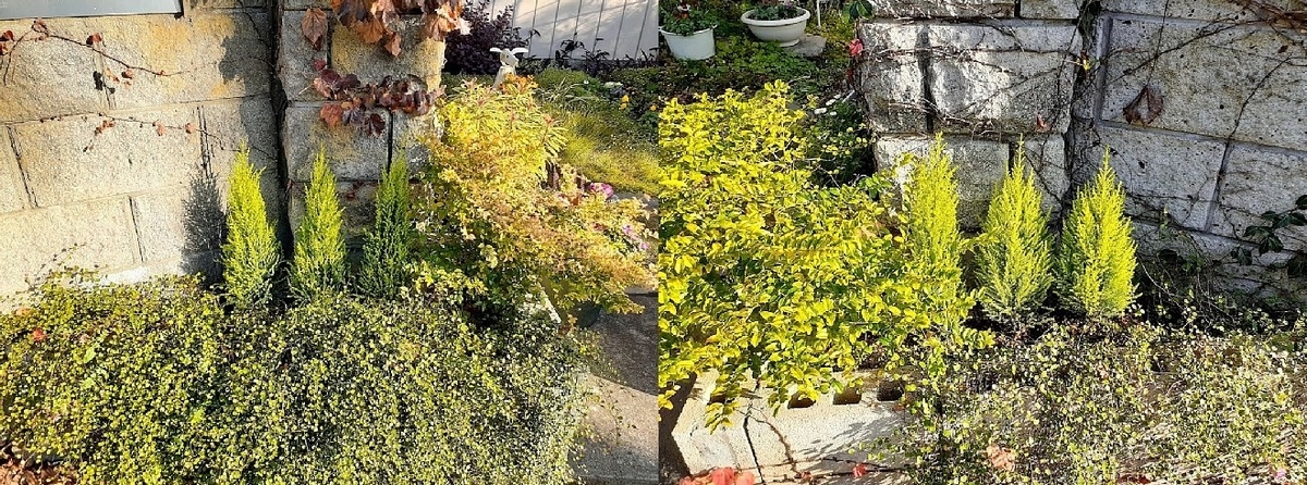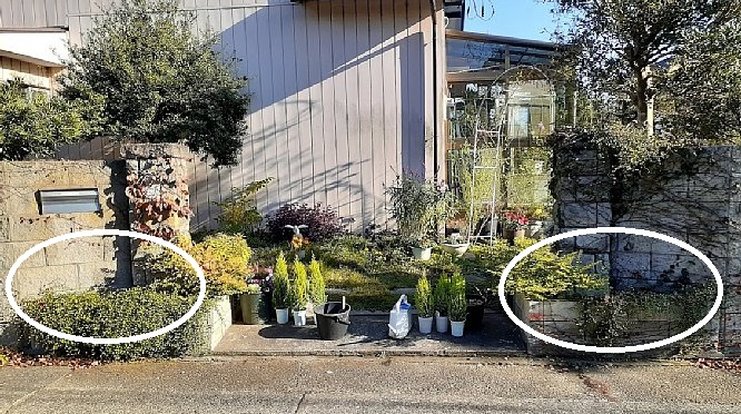ガラ~ンと寂しくなった門扉前の左右の花壇に👇